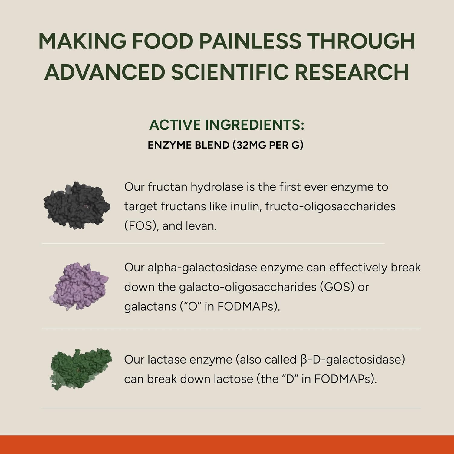 Engineered specifically to break down FODMAPsPatent-pending formula with first-ever fructan-targeting enzyme |